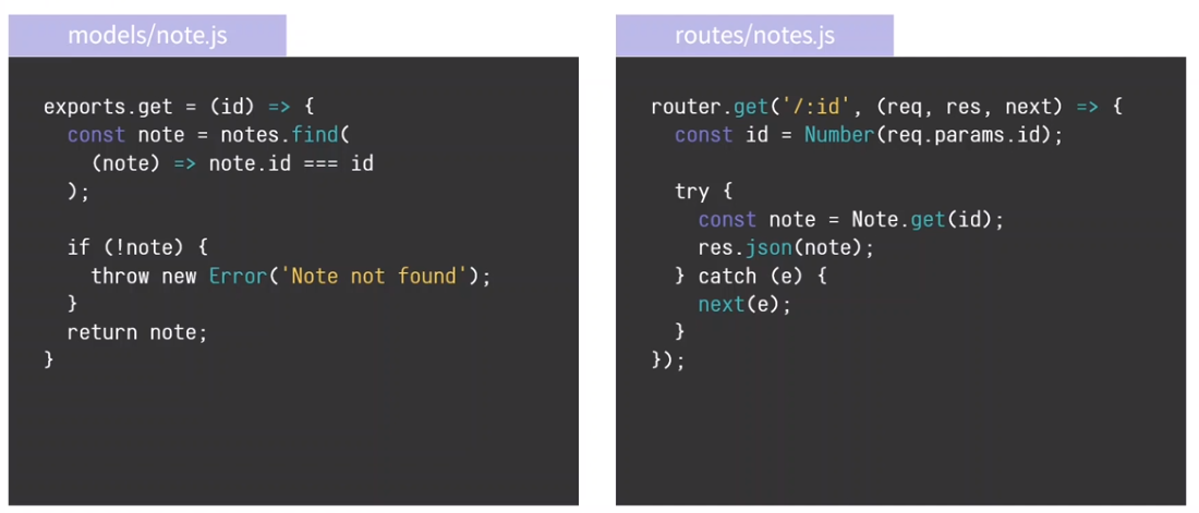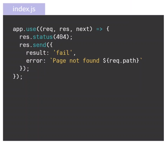 Express.js는 기본적인 404페이지를 가지고 있지만 직접 처리가 필요한 경우 이와 같은 Route Handler를 추가해야 함.