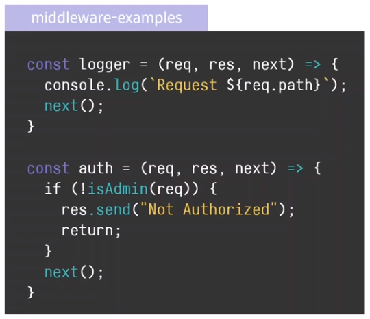 req, res, next를 인자로 갖는 함수를 작성하면 미들웨어가 됨
