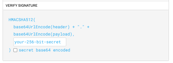 - 원하는 비밀 키(Secret Key)와 Header에서 지정한 알고리즘을 사용하여 Header와 Payload에 대해서 단방향 암호화를 수행한다.